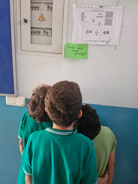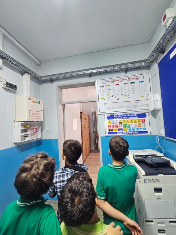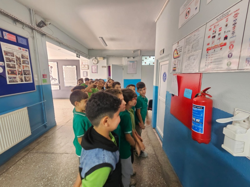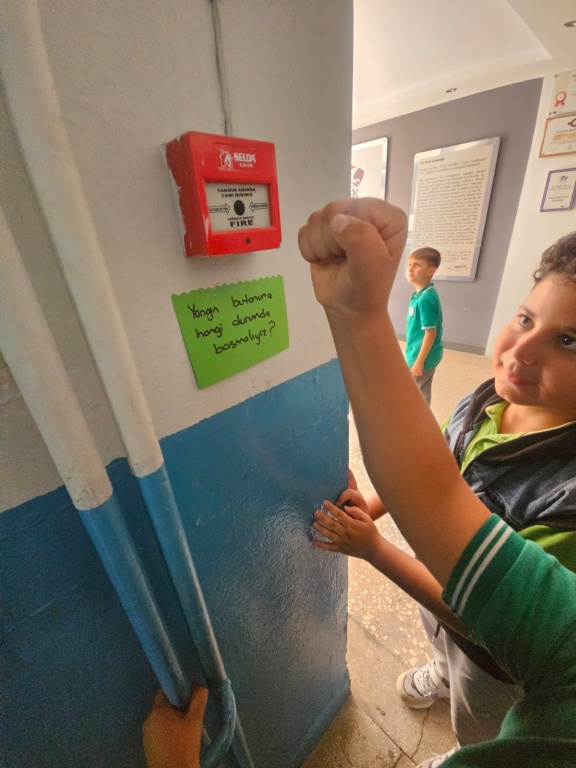 Bu etkinlik kapsamında öğrencilerimiz sınıf ve çıkış kapıları, toplanma alanı gibi kritik noktalarda istasyonlar oluşturdular.Her istasyona soru kartları yerleştirerek , yangın anında oluşabilecek durumları değerlendirdiler. Daha sonra okulumuzun yangın alarmı, tahliye planı, yangın söndürme araçları, toplanma alanı gibi bölümlerini gezerek fikir alışverişinde bulundular. Daha sonra yangın güvenliği ile ilgili afişlerini yaparak , olası riskler ve zorluklar hakkında farkındalık oluşturdular.