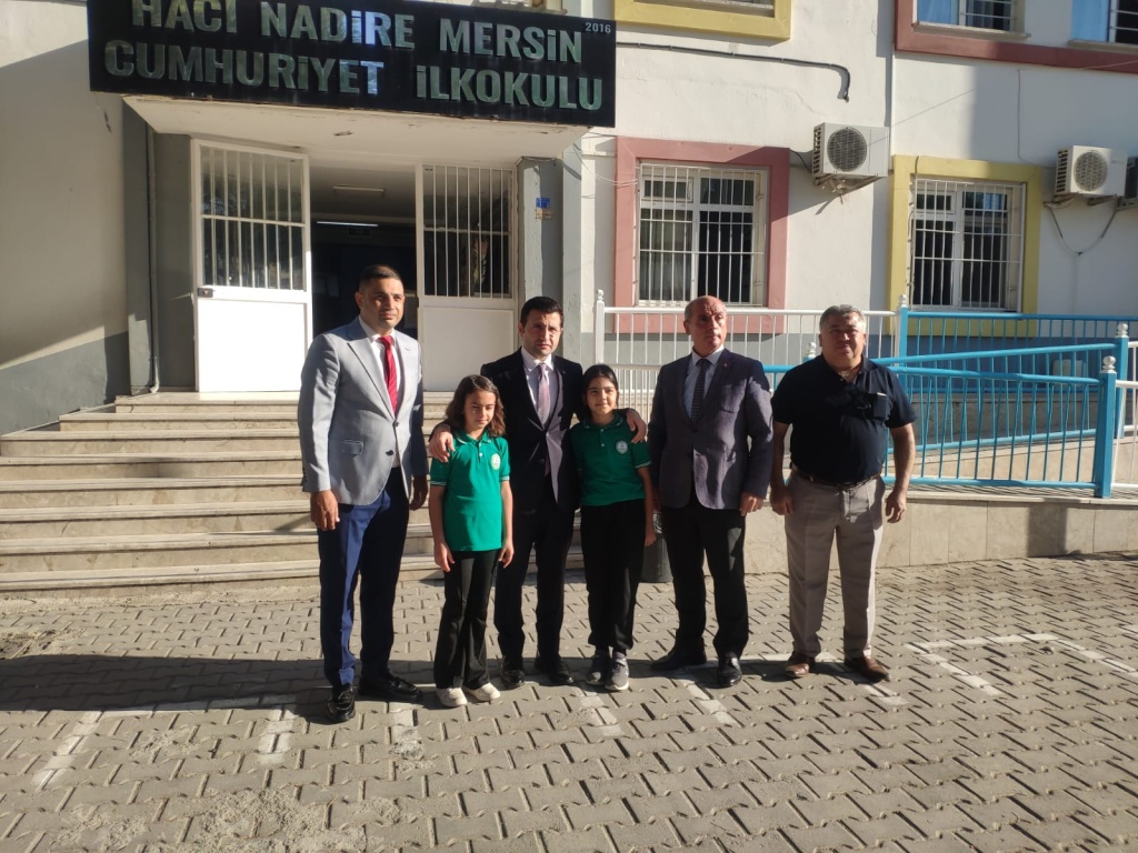 Kaymakamımız Sayın İsmail PENDİK, İlçe Milli Eğitim Müdürümüz Sayın Bülent AKHAN, Cumhuriyet Mahallesi Muhtarımız Mustafa TÜRKYILMAZ; Hacı Nadire Mersin Cumhuriyet İlkokulumuzu ziyaret ederek öğretmen ve öğrencilerle bir araya geldi. Sınıfları gezerek okulun genel durumu hakkında bilgi alan Kaymakamımız Sayın İsmail PENDİK, öğretmen ve öğrencilerle sohbet ederek, onların istek ve taleplerini dinleyerek yeni eğitim-öğretim yılında başarılar diledi.